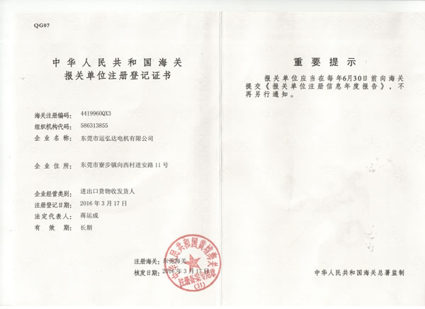 從開公司到現(xiàn)在,一直和運弘達合作,運弘達電機質量非常好,都遵守ISO9001:2008質量控制體系,我們很放心,并于貴公司建立良好的合作關系!還有優(yōu)質的售后服務,遇到問題總能第一時間幫我們解決,非常感